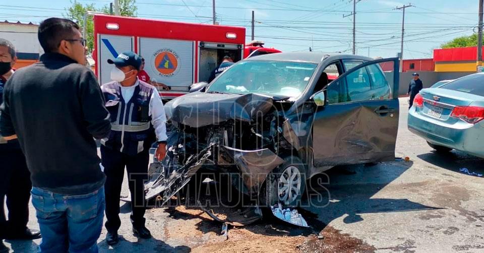 Liberan Bomberos a conductor prensado tras fuerte choque en Reynosa