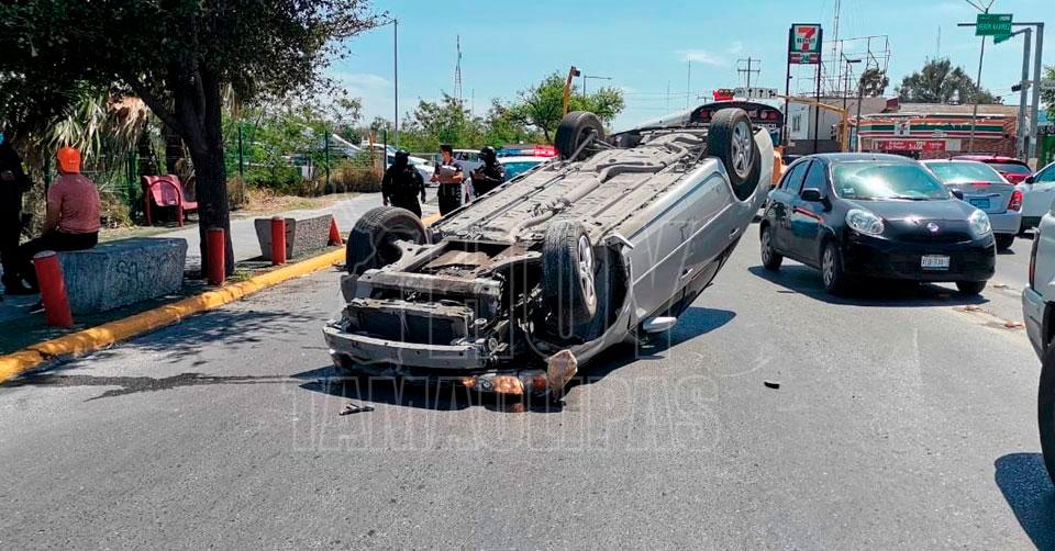 Jovencito pierde el control de su auto y vuelca en Reynosa