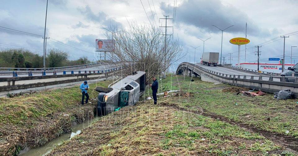 Familia se salva de morir tras choque y volcadura en Reynosa
