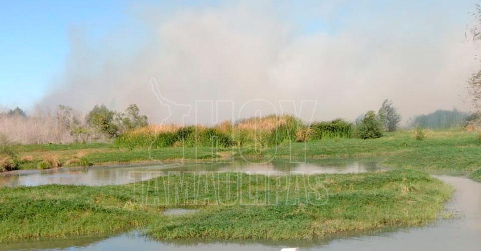 Fuertes vientos avivan incendio de pastizal en Reynosa