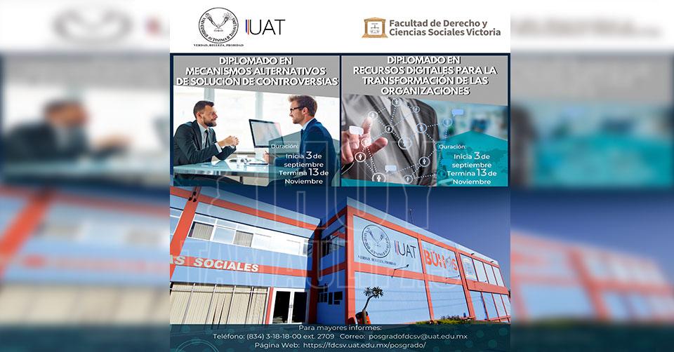 Invitan a cursar diplomados de la Facultad de Derecho UAT Victoria