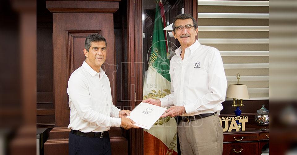Entrega Rector a Felipe del Ángel Malibrán nombramiento de presidente del Club Correcaminos