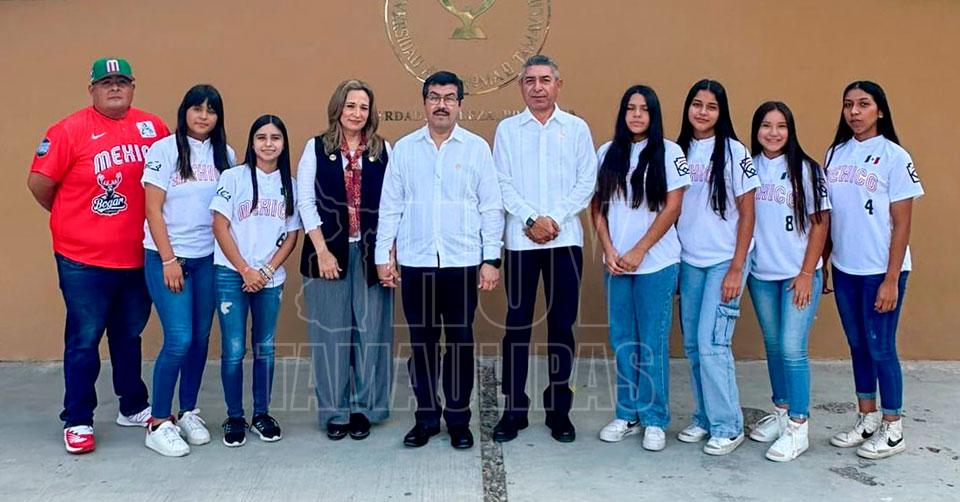 Felicita Dámaso Anaya a softbolistas de la UAT campeonas del torneo nacional Williamsport