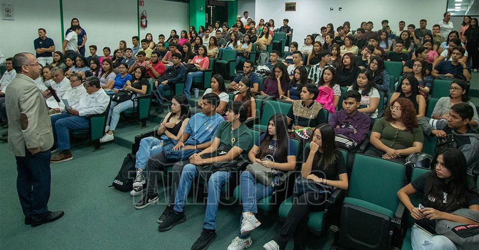 Rector presenta Vida UAT a estudiantes de Nuevo Laredo