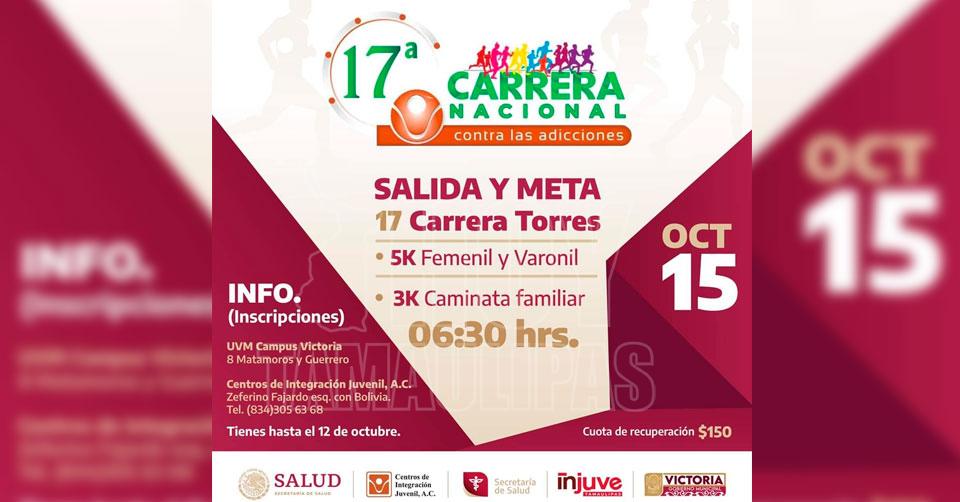 Invitan municipio de Victoria y CIJV a participar en carrera contra las adicciones