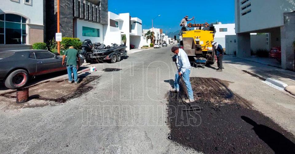 Mejora municipio vialidades con bacheo en calles de Victoria