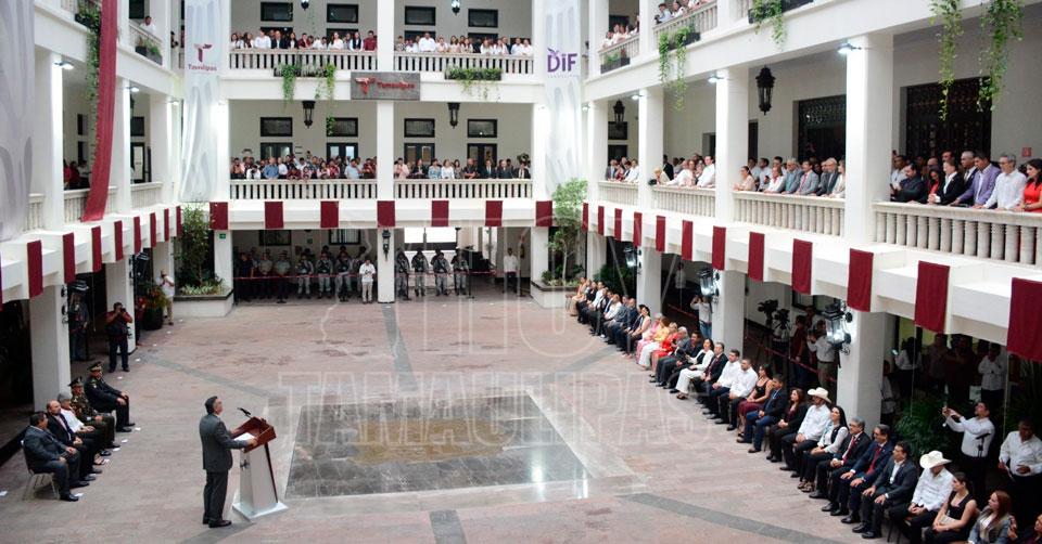 Inaugura Américo rehabilitación de Palacio de Gobierno y devela escudos de los 43 municipios