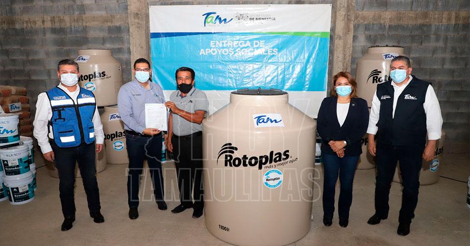 Entregan gobierno de Tamaulipas y Sebien cemento y tinacos subsidiados a familias victorenses