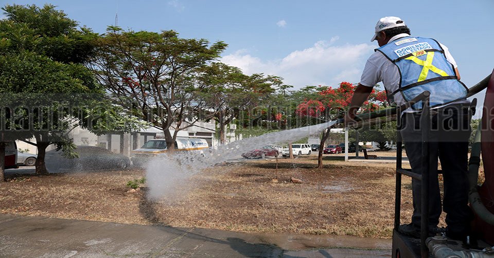Aprovechan agua tratada en Ciudad Victoria regando plazas públicas, áreas verdes y parques