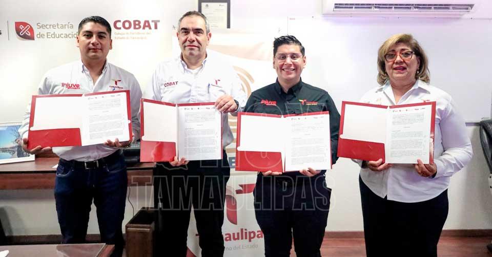 Firman INJUVE y COBAT convenio de colaboración de servicio social y prácticas profesionales