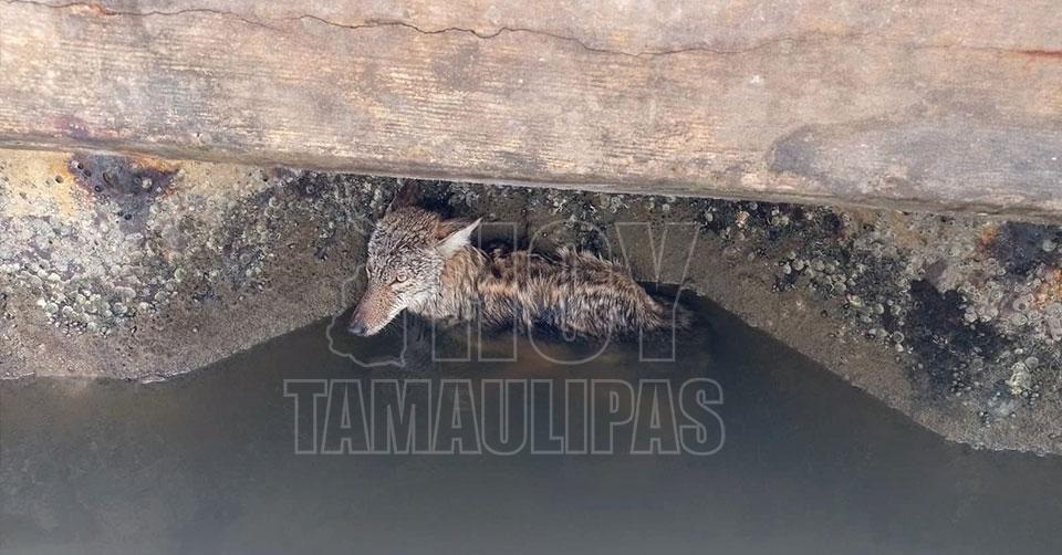 Bomberos de Tampico salvan a coyote que estaba en el hábitat de cocodrilos