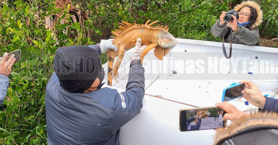 Rescatan en Tampico a iguanas que no soportan bajas temperaturas