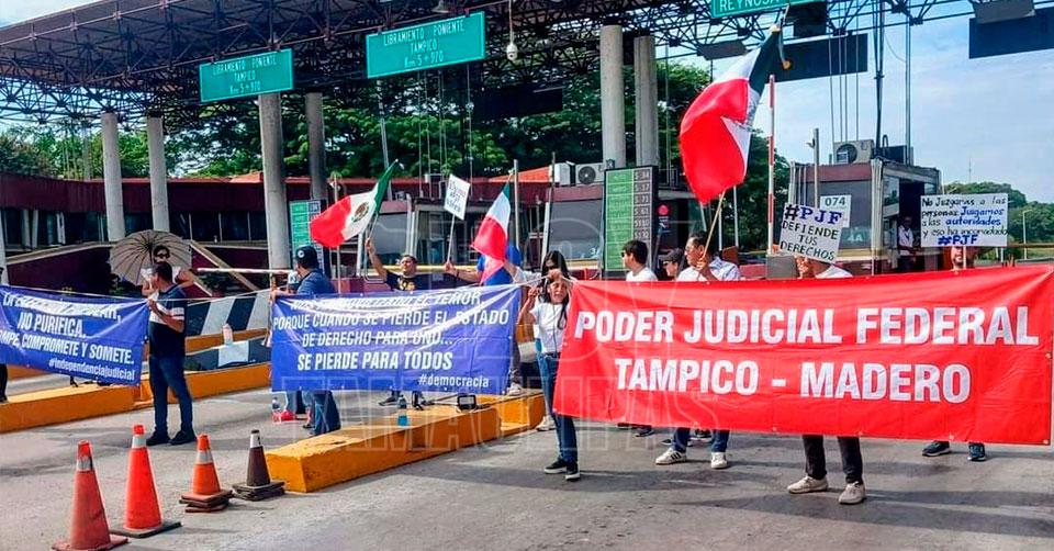 Bloquean trabajadores del Poder Judicial de la Federación de Tampico Libramiento Poniente