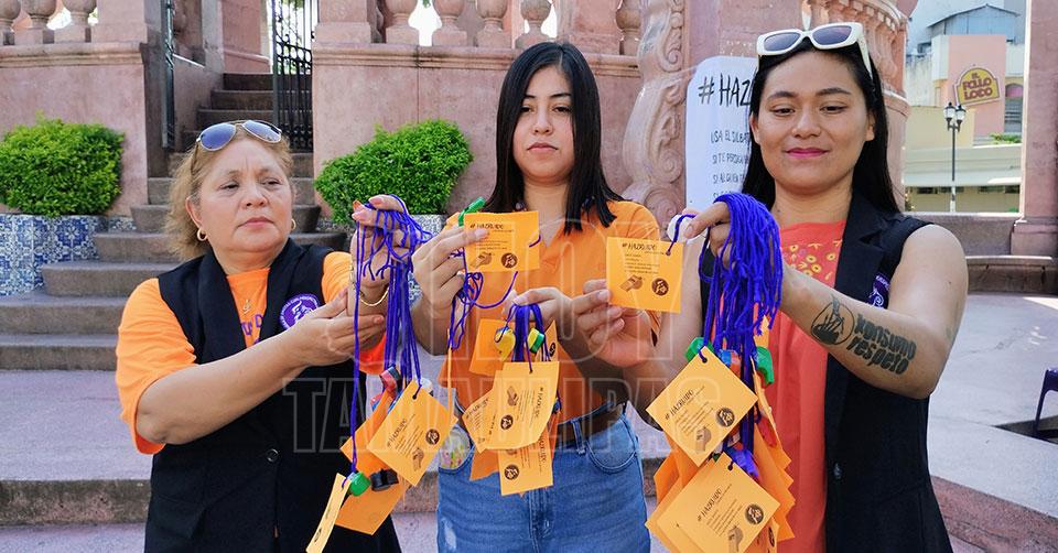 Entregan feministas silbatos en Tampico para hacer 'Ruido contra la Violencia' de género