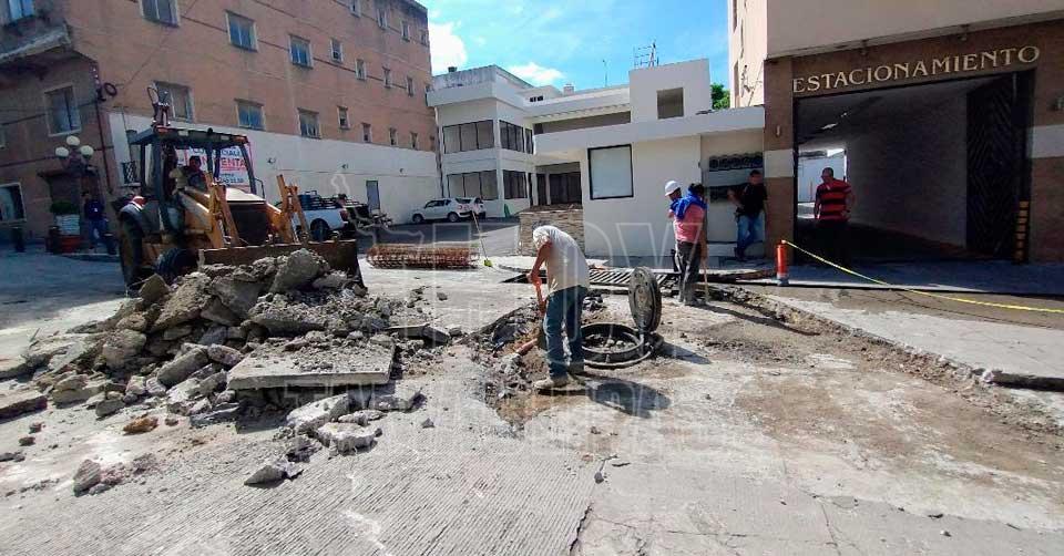Cierran tramo del Centro de Tampico para reparar hundimientos en el concreto