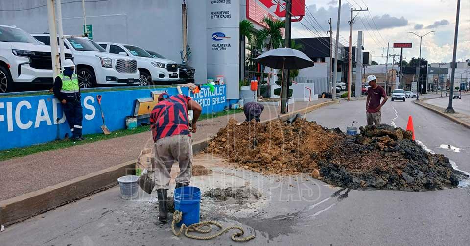 Desalojan basura y resuelven inundación en cruce de Tampico