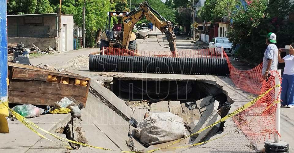 Enorme socavón de 12 metros alarma a vecinos de Tancol en Tampico