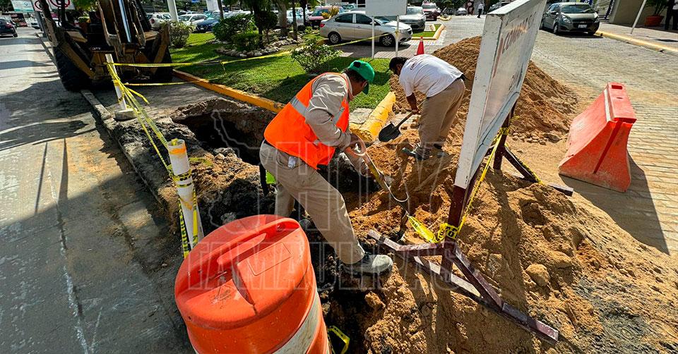 Trabaja COMAPA Sur en reparación de línea de drenaje en importante sector de Tampico