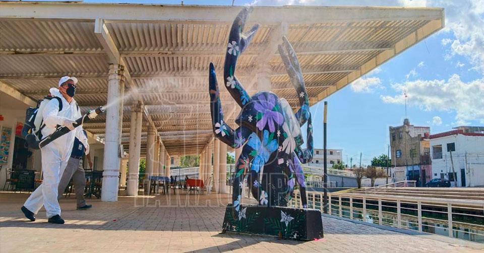 Desinfectan áreas públicas de Tampico para contener enfermedades