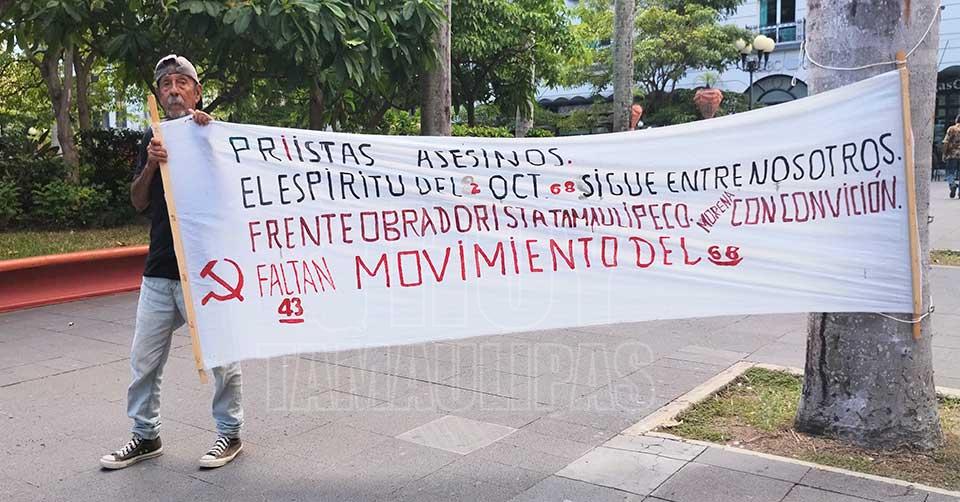 Solitario manifestante del Partido Comunista de Tampico recuerda el 2 de octubre del 68