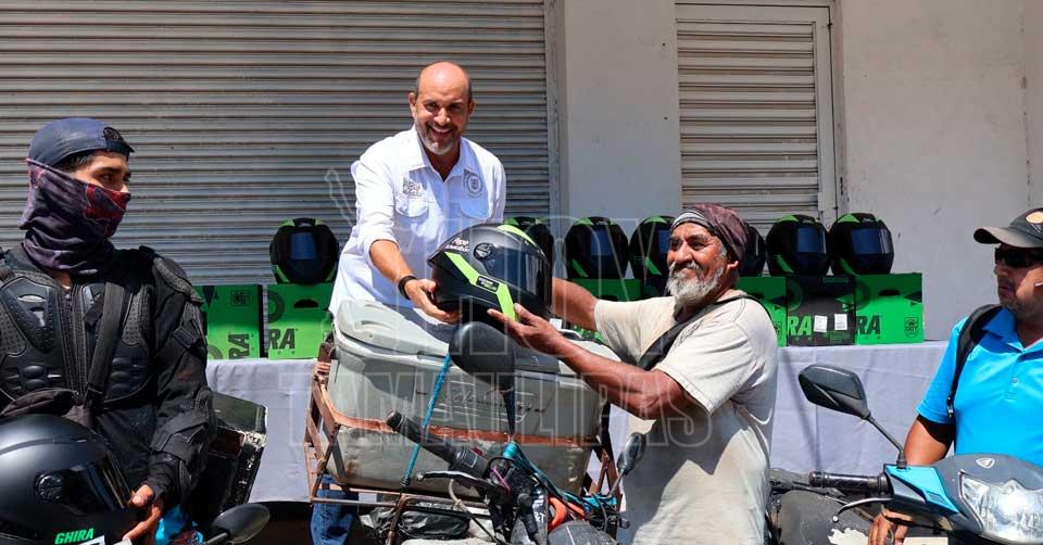 Realiza Pepe Schekaiban Nueva Entrega de Cascos a Motociclistas