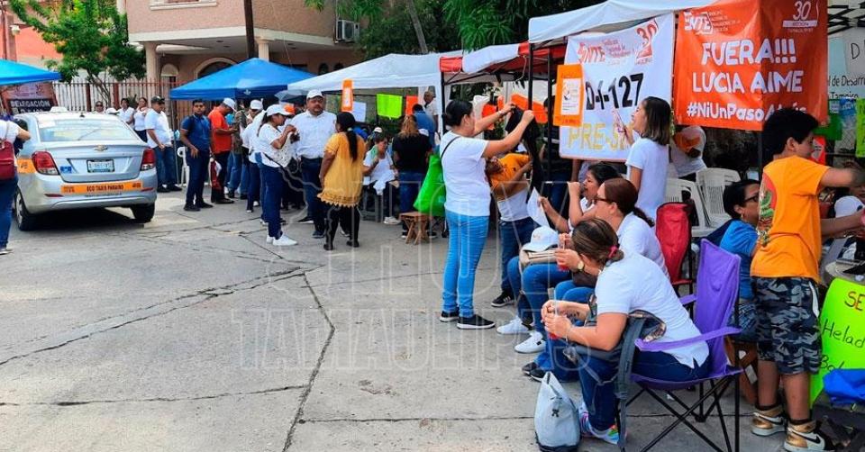Cumplen maestros de Tampico ocho días de plantón en oficinas del Crede
