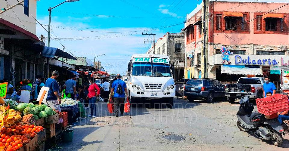 Frenan paso de rutas del transporte público hacia el mercado de Tampico