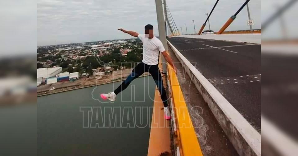 ¡Qué bárbaro! Arriesgó su vida para tomarse una foto en el puente de Tampico