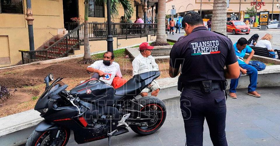 Nuevamente retira Tránsito de Tampico moto mal estacionada en el Centro