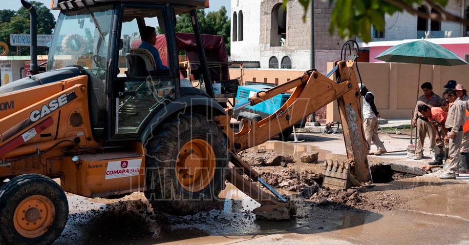 Trabajadores de Comapa Sur reparan fuga de agua en la zona norte