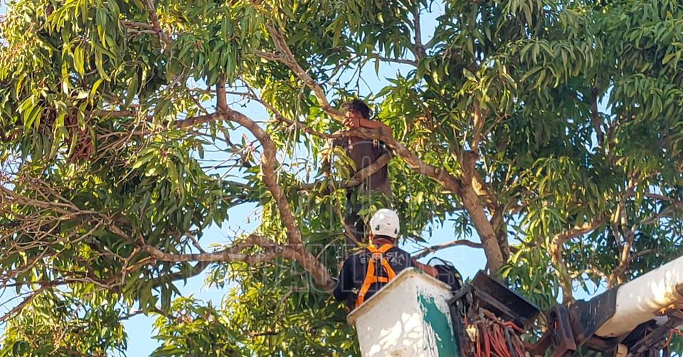 Pasa arriba de un árbol cuatro horas y todavía pelea con polis en Madero