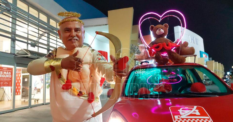 Cupido recorre en taxi avenidas de Tampico enamorando a parejas
