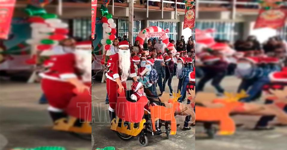 Convierten silla de ruedas en trineo para que pequeña participe en festival navideño en Tampico