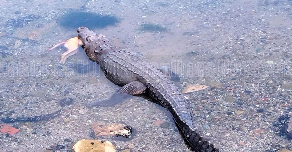 Captan a cocodrilo devorando a un perrito en la Laguna del Carpintero