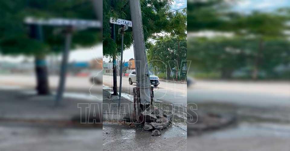 Vecinos exigen a CFE reparar poste en riesgo de colapso en Tampico