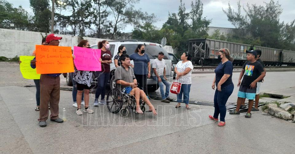 Bloquean vecinos acceso al Puerto de Tampico por falta de luz eléctrica