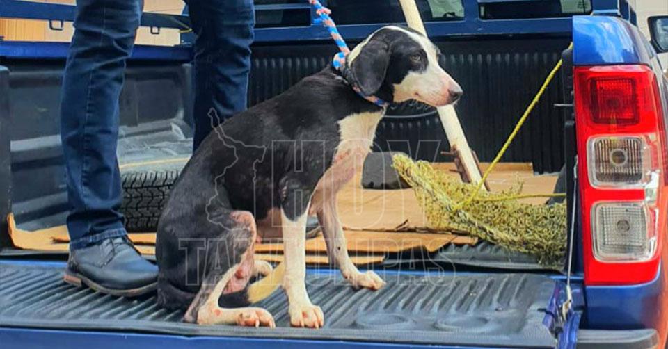 Salvan a perrita en Tampico; su cachorrito sigue dentro del dren pluvial