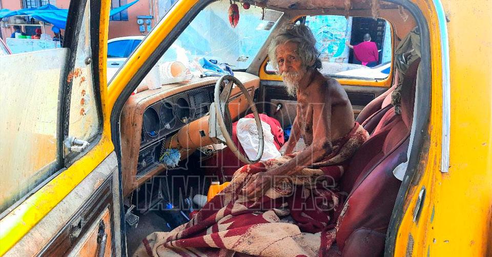 Rescatan a abuelito de Tampico; tenía 1 año viviendo en camioneta abandonada