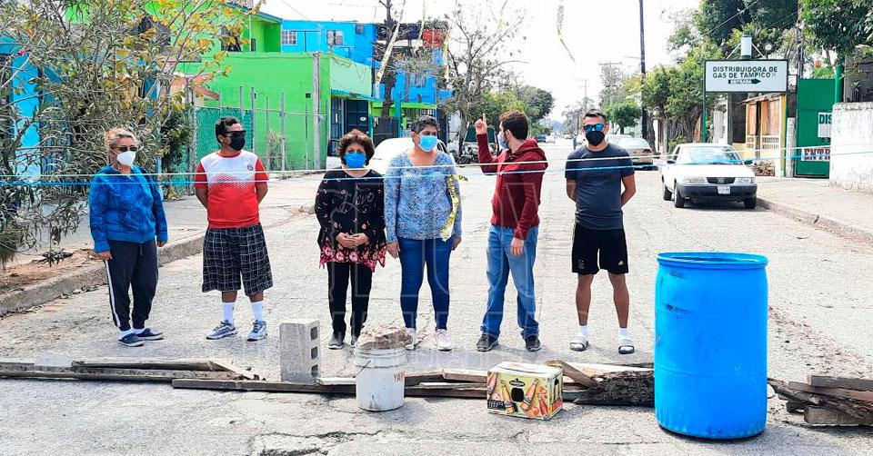 Bloquean vecinos calle de Tampico por paso de pipas y derribo de cables de luz