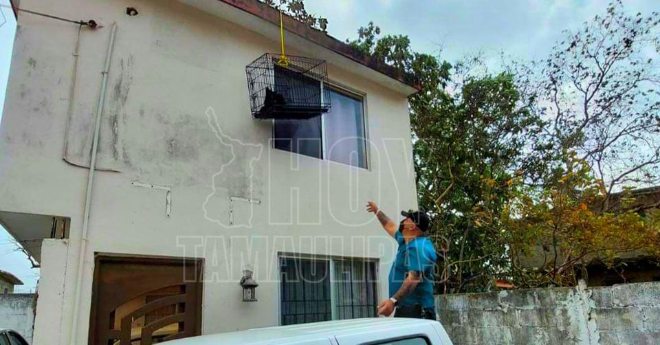 Rescatan a gatito atrapado en techo de casa abandonada en Tampico