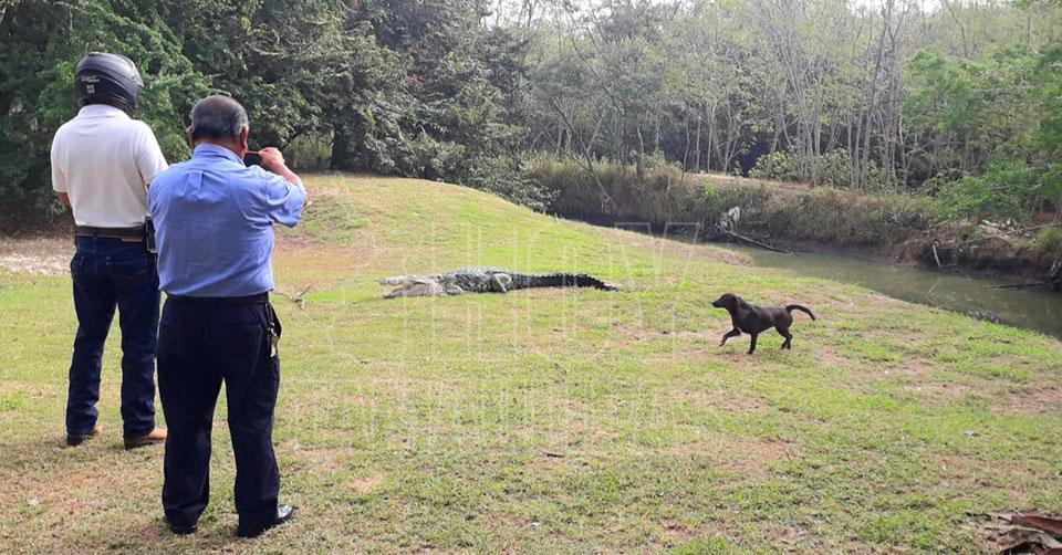 Perros y curiosos 'torean' temerariamente a cocodrilo en laguna de Tampico