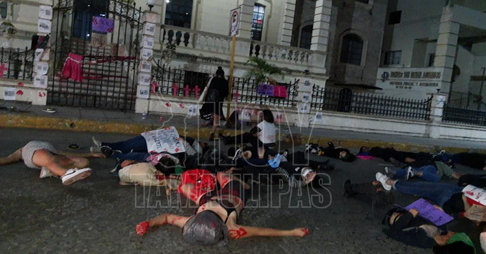 Con performance exigen feministas de Tampico esclarecimiento de feminicidios en Tamaulipas