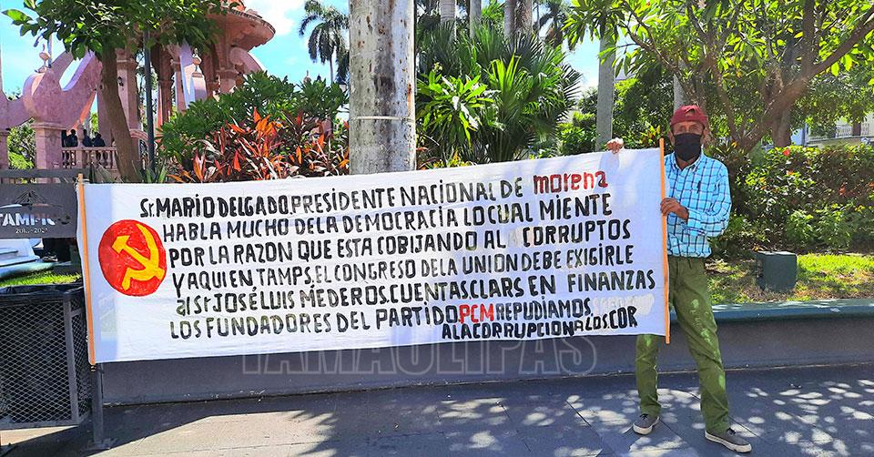 Exige solitario manifestante en Tampico renuncia de Mario Delgado a Morena