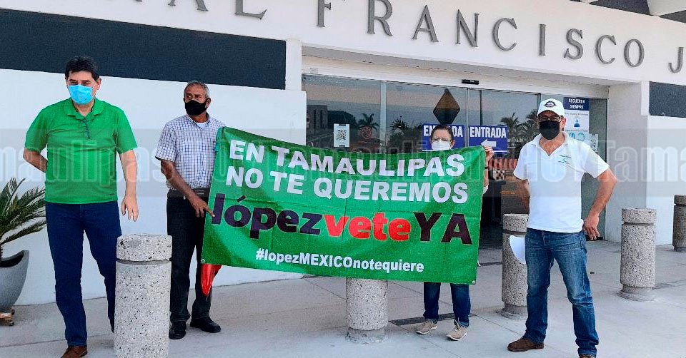 Despiden con protesta a AMLO activistas de FRENA en Aeropuerto de Tampico