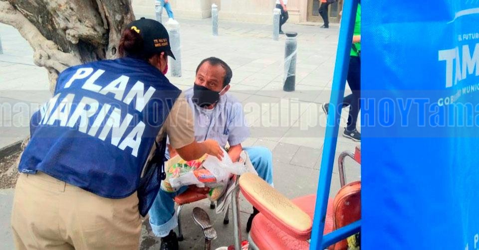 Damas promotoras de la Marina dan despensas en plazas de Tampico
