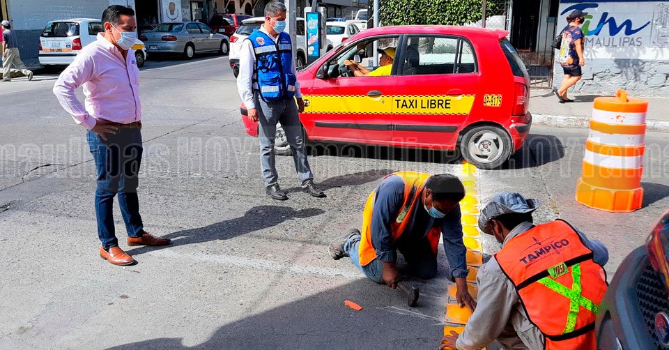 Por accidentes vehiculares, colocan reductores de velocidad en calle de Tampico