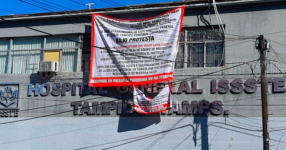 Sindicalizados del Issste de Tampico exigen con manta insumos médicos