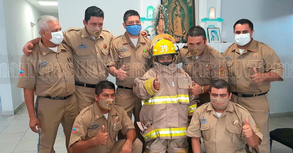 Cumplen en Tampico sueño de Juanito de ser bomberito por un día