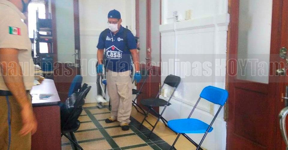 Bomberos de Tampico desinfectan el Palacio Municipal