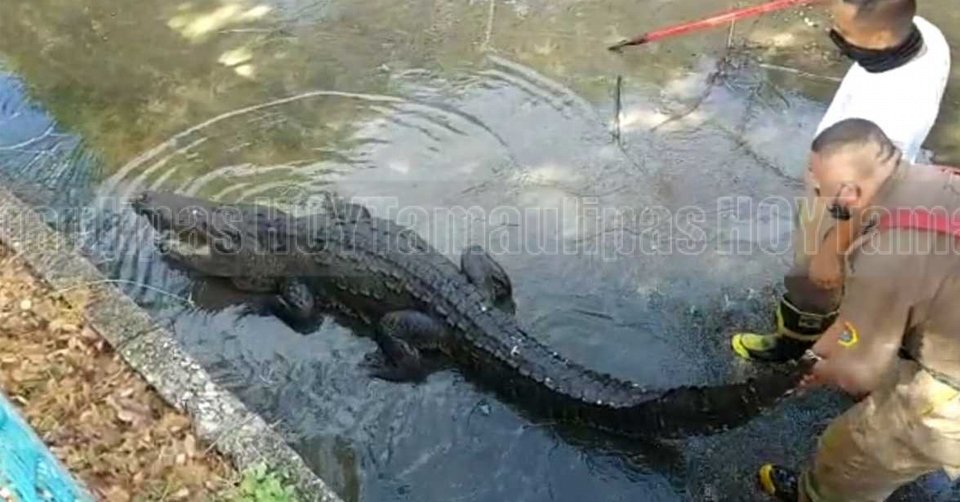 Capturan enorme cocodrilo en Tampico